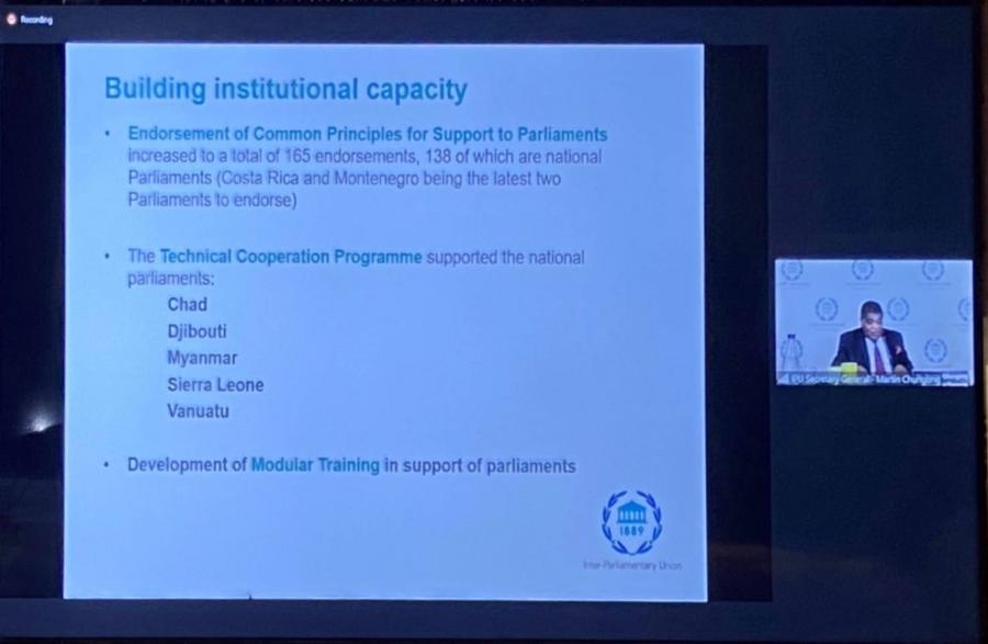 สมาชิกวุฒิสภา เข้าร่วมการประชุมผ่านสื่ออิเล็กทรอนิกส์ของคณะกรรมการบริหารสหภาพรัฐสภา สมัยที่ 286 ในห้วงการประชุมสมัชชาสหภาพรัฐสภา ครั้งที่ 143