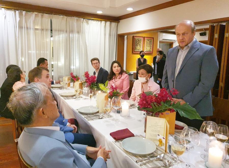 พล.อ.เลิศรัตน์ รัตนวานิช สมาชิกวุฒิสภา ในฐานะประธานกลุ่มมิตรภาพสมาชิกรัฐสภาไทย-รัสเซีย เป็นเจ้าภาพเลี้ยงอาหารค่ำ เพื่อเป็นเกียรติแก่ H.E. Mr. Evgeny Tomikhin เอกอัครราชทูตสหพันธรัฐรัสเซียประจำประเทศไทย และคณะ