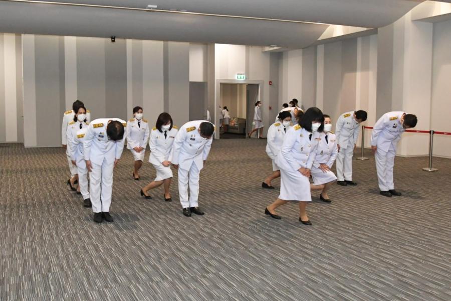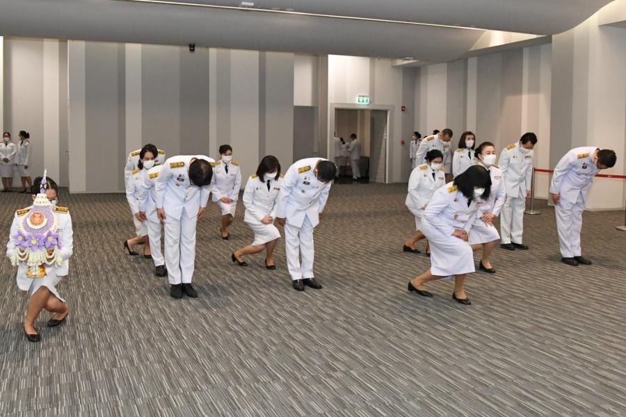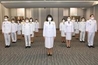 วันศุกร์ที่ 10 ธันวาคม 2564 เวลา 10.15 นาฬิกา ณ ห้องจัดประชุมสัมมนา B1 – B2 ชั้น B1 อาคารรัฐสภา น.ส.นภาภรณ์ ใจสัจจะ เลขาธิการวุฒิสภา พร้อมด้วย ผู้บริหารและข้าราชการสำนักงานเลขาธิการวุฒิสภา วางพานประดับพุ่มดอกไม้ถวายบังคมพระรูปต้นแบบพระบาทสมเด็จพระปกเกล้าเจ้าอยู่หัว  ในนาม “สำนักงานเลขาธิการวุฒิสภา” เนื่องในพิธีฉลองวันพระราชทานรัฐธรรมนูญแห่งราชอาณาจักรไทย
