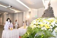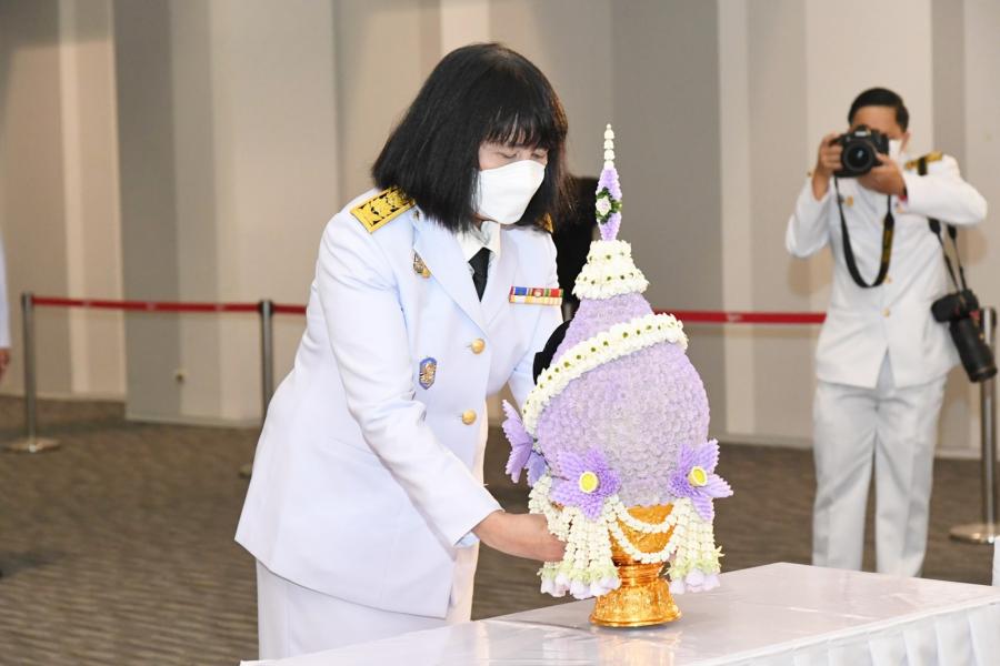 เลขาธิการวุฒิสภา วางพานประดับพุ่มดอกไม้ถวายบังคมพระรูปต้นแบบพระบาทสมเด็จพระปกเกล้าเจ้าอยู่หัว ในนาม “สำนักงานเลขาธิการวุฒิสภา”