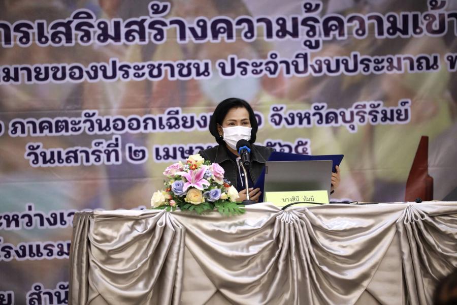 วันเสาร์ที่ 2 เมษายน 2565 ณ โรงแรมเครสโค จ.บุรีรัมย์ นางสินี ส้มมี ผู้อำนวยการสำนักการประชุม เป็นประธานในพิธีเปิดโครงการการเสริมสร้างความรู้ความเข้าใจในการเข้าชื่อเสนอกฎหมายของประชาชนประจำปีงบประมาณ พ.ศ. 2565 ครั้งที่ 2 โดยมี นายสมพงษ์ รัตณะวรรณ ผู้บังคับบัญชากลุ่มงานเข้าชื่อเสนอกฎหมาย กล่าวรายงาน