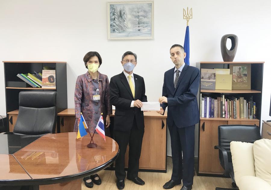 วันพุธที่ 20 เมษายน 2565 เวลา 11.00 นาฬิกา ณ สถานเอกอัครราชทูตยูเครนประจำประเทศไทย นายเจน นำชัยศิริ สมาชิกวุฒิสภา และประธานกลุ่มมิตรภาพสมาชิกรัฐสภาไทย ยูเครน พร้อมด้วยนางสุเนตตา แซ่โก๊ะ สมาชิกสภาผู้แทนราษฎร และกรรมการบริหารกลุ่มมิตรภาพสมาชิกรัฐสภาไทย ยูเครน เป็นตัวแทนกลุ่มมิตรภาพสมาชิกรัฐสภาไทย - ยูเครน มอบเงินช่วยเหลือด้านมนุษยธรรมให้แก่ยูเครน โดยมี นายOleksandr Lysak อุปทูตยูเครนประจำประเทศไทยเป็นผู้รับมอบ