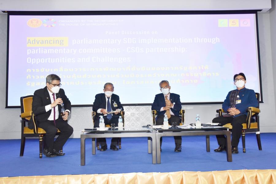 ต่อจากนั้น เป็นการเสวนาระหว่างสมาชิกรัฐสภาจากประเทศสมาชิก AIPA และสมาชิกรัฐสภาไทย ในหัวข้อ "การขับเคลื่อนวาระการพัฒนาที่ยั่งยืนของภาครัฐสภาให้ก้าวหน้า ผ่านหุ้นส่วนความร่วมมือระหว่างคณะกรรมาธิการรัฐสภากับภาคประชาสังคม: โอกาสและความท้าทาย" โดยได้รับเกียรติจาก ศ.เกียรติคุณไกรสิทธิ์ ตันติศิรินทร์ สมาชิกวุฒิสภา  รศ.รงค์ บุญสวยขวัญ สมาชิกสภาผู้แทนราษฎร พรรคพลังประชารัฐ  และนายณัฐพล สืบศักดิ์วงศ์ สมาชิกสภาผู้แทนราษฎร แบบบัญชีรายชื่อ พรรคก้าวไกล