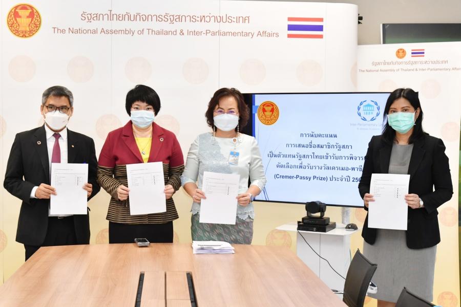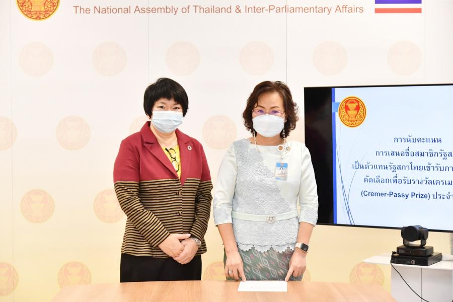 เมื่อวันอังคารที่ 26 เมษายน 2565 เวลา 12.15 นาฬิกา ณ ห้องประชุมสำนักองค์การรัฐสภาระหว่างประเทศ ชั้น 3 อาคารรัฐสภา นางพรพิศ เพชรเจริญ เลขาธิการสภาผู้แทนราษฎร พร้อมด้วย น.ส.สตีจิตร ไตรพิบูลย์สุข รองเลขาธิการสภาผู้แทนราษฎร และนางบุณฑริกา ชุณหะนันทน์ ผู้อำนวยการสำนักองค์การรัฐสภาระหว่างประเทศ ร่วมเป็นสักขีพยานในการนับคะแนนเพื่อคัดเลือกสมาชิกรัฐสภาเป็นตัวแทนของรัฐสภาไทยเข้ารับการพิจารณาคัดเลือกเพื่อรับรางวัลเครเมอ-พาซี (Cremer-Passy Prize) ประจำปี 2565 โดยรายนามสมาชิกรัฐสภาที่ได้รับการเสนอชื่อ จำนวน 5 ท่าน ได้แก่