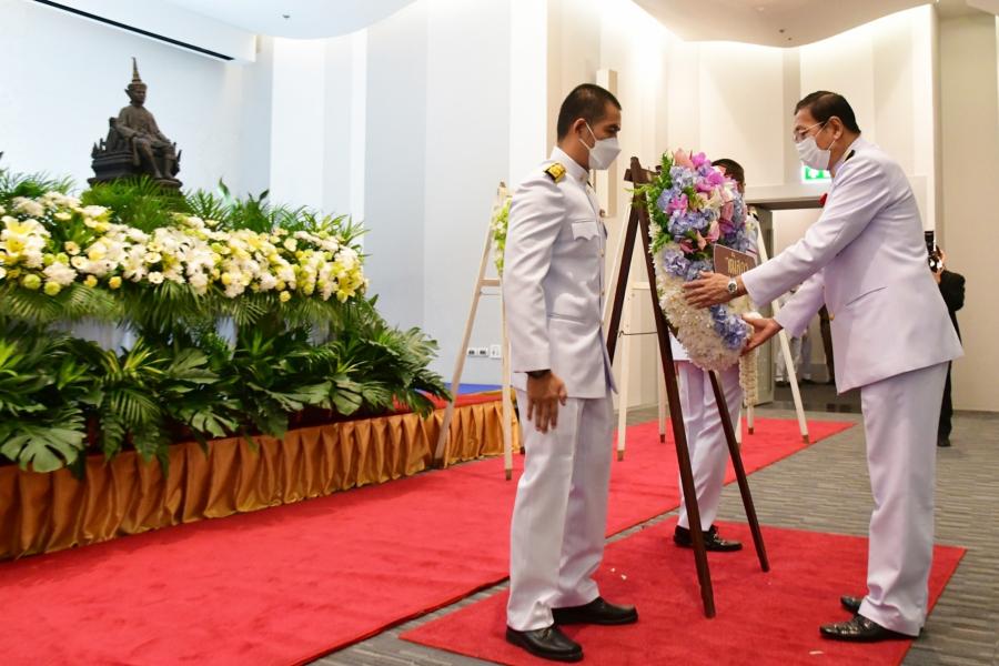 ประธานวุฒิสภา วางพวงมาลาถวายราชสักการะพระรูปต้นแบบพระบาทสมเด็จพระปกเกล้าเจ้าอยู่หัว ในนาม วุฒิสภา