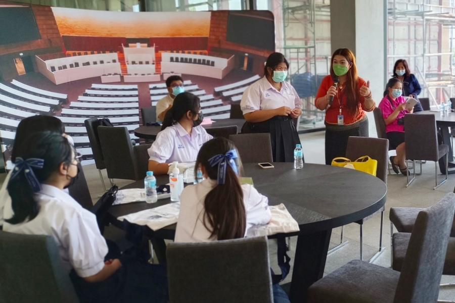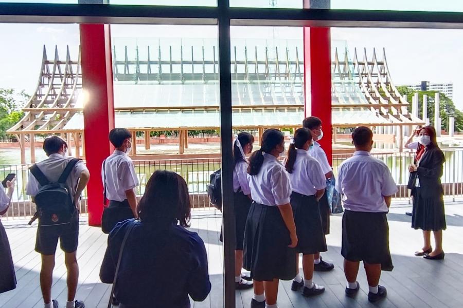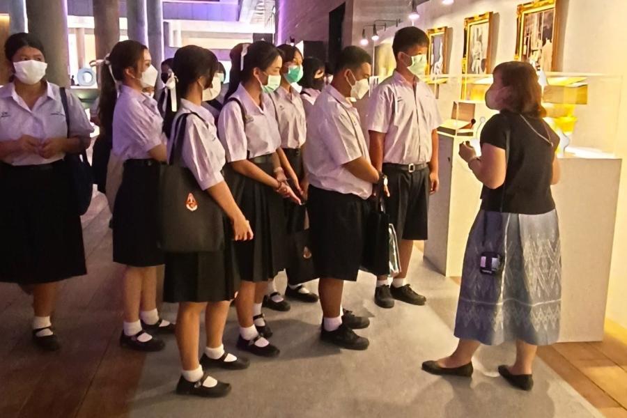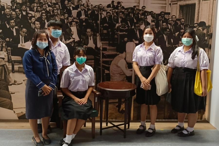 คณะครูและนักเรียน โรงเรียนปากช่อง จังหวัดนครราชสีมา จำนวน 19 คน เยี่ยมชมรัฐสภาบริเวณภายนอกอาคารรัฐสภา พร้อมชมนิทรรศการ “90 ปี รัฐสภา การเดินทางและความหวัง”