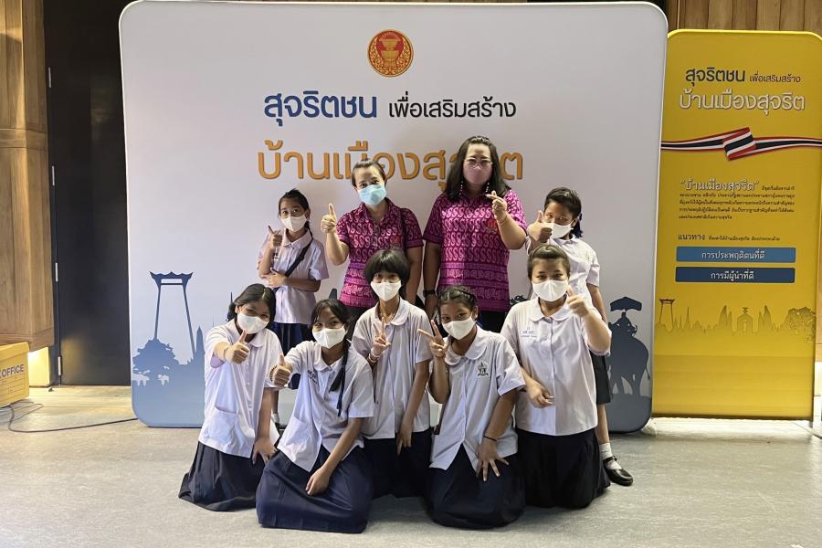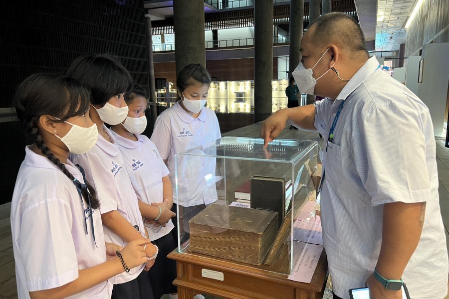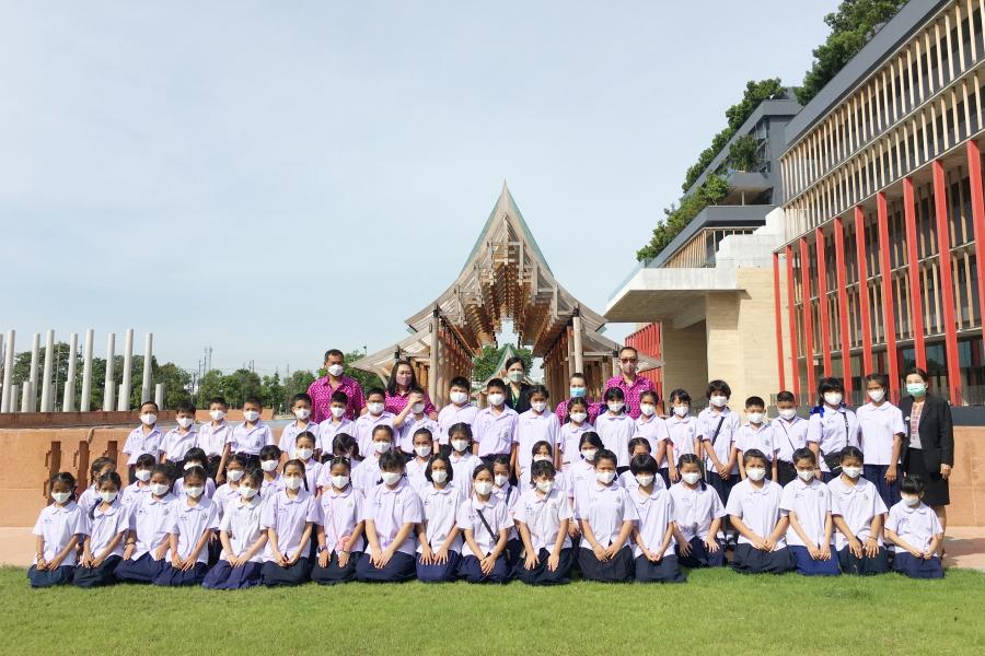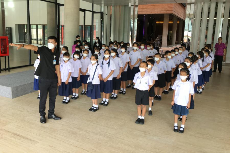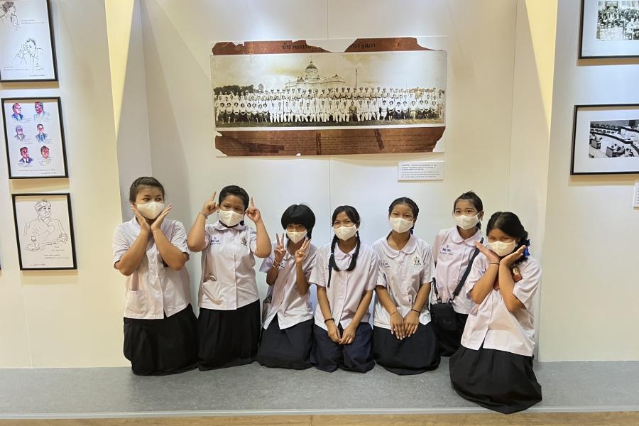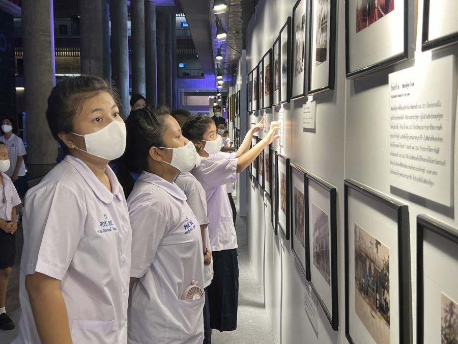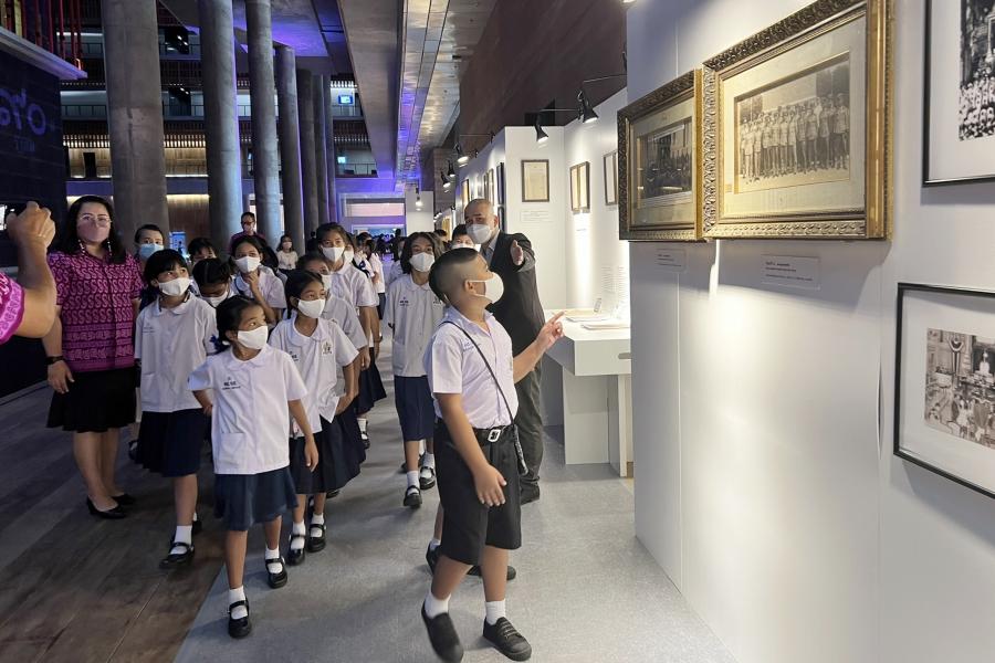 คณะอาจารย์และนักเรียน โรงเรียนวัดจันทรสโมสร กรุงเทพฯ เยี่ยมชมบริเวณภายนอกอาคารรัฐสภา และเข้าชมนิทรรศการ 90 ปี รัฐสภา การเดินทางและความหวัง