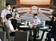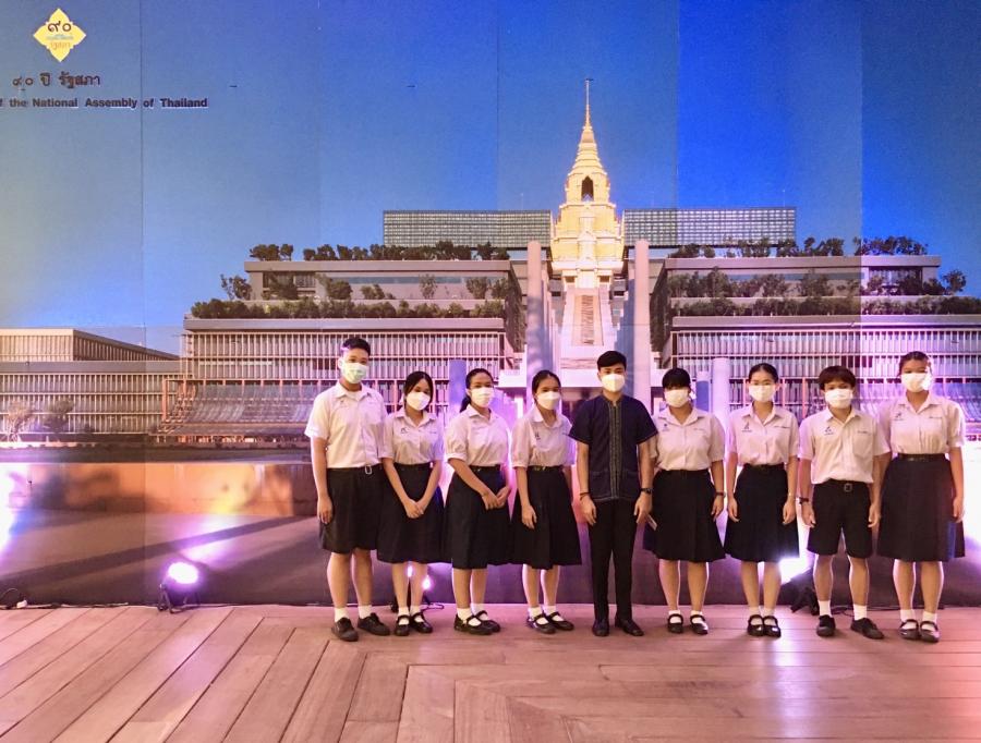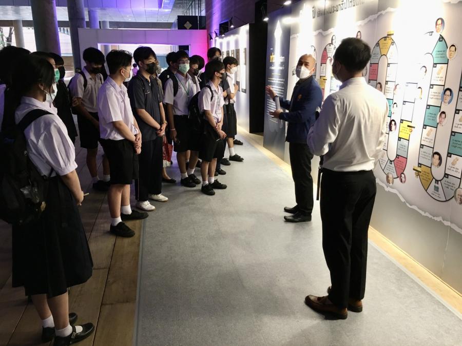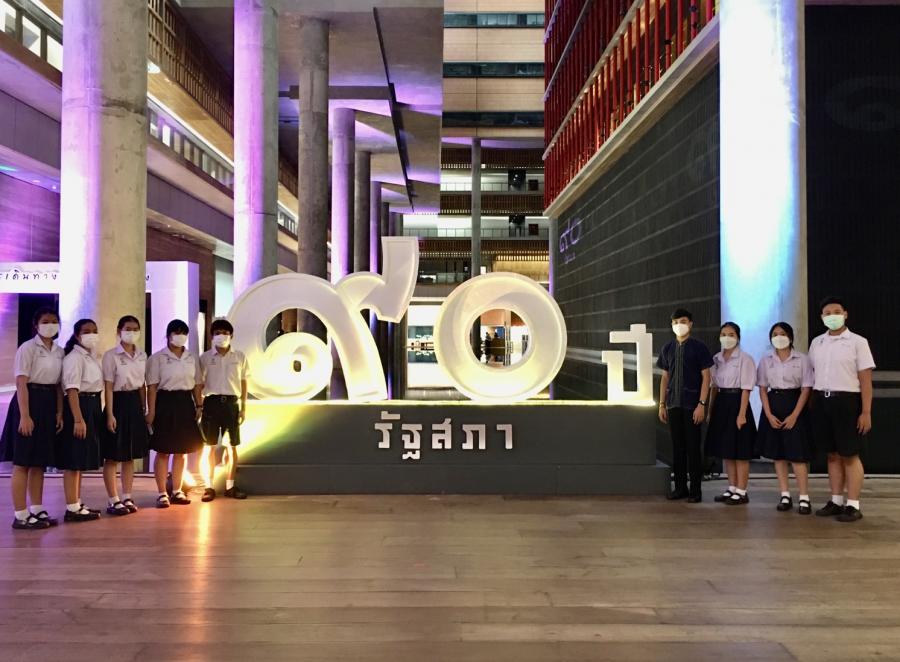 คณะครูและนักเรียน โรงเรียนบางปะกอกวิทยาคม และโรงเรียนศีลาจารย์พิพัฒน์ เยี่ยมชมบริเวณภายนอกอาคารรัฐสภา และเข้าชมนิทรรศการ 90 ปี รัฐสภา การเดินทางและความหวัง
