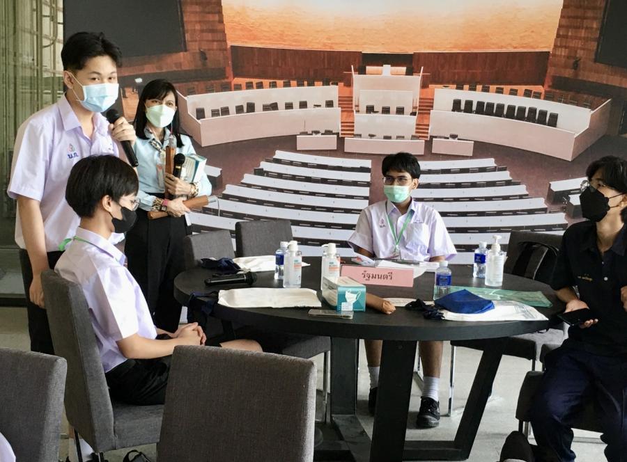 วันศุกร์ที่ 8 ก.ค. 65 เวลา 14.00 นาฬิกา คณะครูและนักเรียน โรงเรียนบางปะกอกวิทยาคม กรุงเทพมหานคร จำนวน 23 คน และคณะครูและนักเรียน โรงเรียนศีลาจารย์พิพัฒน์ กรุงเทพมหานคร จำนวน 10 คน เยี่ยมชมบริเวณภายนอกอาคารรัฐสภา และเข้าชมนิทรรศการ "90 ปี รัฐสภา การเดินทางและความหวัง" รอบสระน้ำโซนกลาง ชั้น 1 อาคารรัฐสภา พร้อมรับมอบหนังสือที่ระลึก 90 ปี รัฐสภาจากวิทยากรผู้บรรยาย นอกจากนี้ ยังได้เข้าร่วมกิจกรรม “School in Parliament” ด้วย