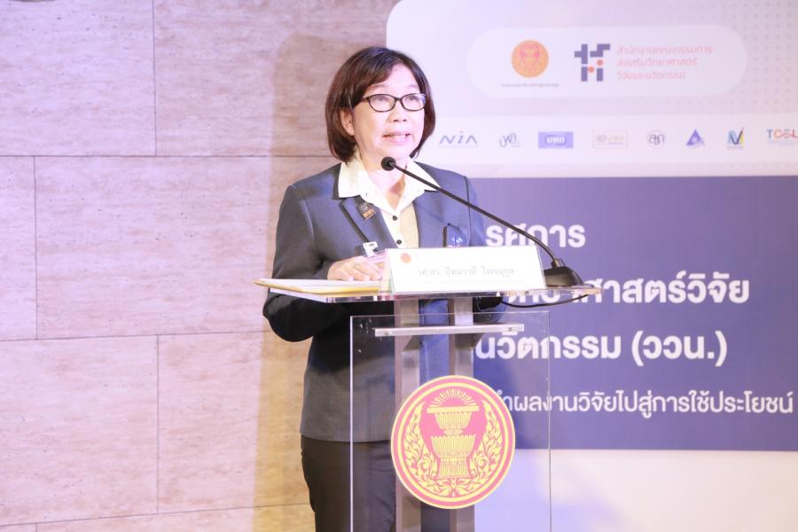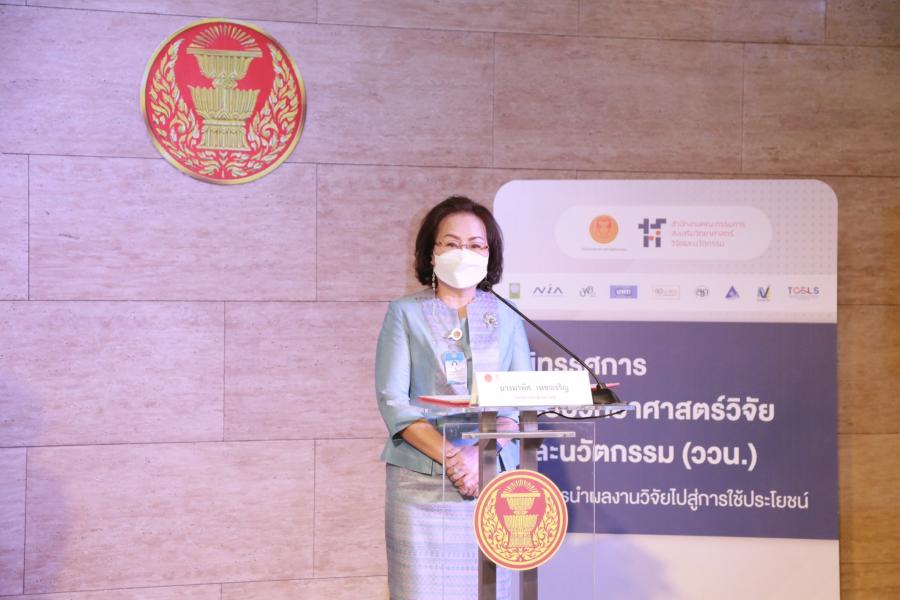 ทั้งนี้ นางพรพิศ เพชรเจริญ กล่าวว่า รู้สึกเป็นเกียรติอย่างยิ่งที่ได้เป็นประธานในพิธีเปิดการจัดนิทรรศการในครั้งนี้ เพื่อแสดงผลงานวิจัยของหน่วยงานในระบบวิทยาศาสตร์ วิจัยและนวัตกรรม โดยเป็นไปตามบันทึกข้อตกลงความร่วมมือระหว่างสำนักงานเลขาธิการสภาผู้แทนราษฎรกับ สกสว. ซึ่งได้ก่อให้เกิดประโยชน์ต่อวงงานรัฐสภา ในฐานะกลไกของฝ่ายนิติบัญญัติในการสนับสนุนบทบาทและหน้าที่ของสมาชิกรัฐสภาในการพิจารณากฎหมาย การกำกับตรวจสอบการทำหน้าที่ของฝ่ายบริหาร การพิจารณางบประมาณรายจ่ายประจำปี และการให้ความเห็นชอบเรื่องสำคัญ ๆ ของประเทศ โดยการดำเนินกิจกรรมต่าง ๆ ที่เกิดขึ้นจากความร่วมมือของทั้งสองหน่วยงานในการเชื่อมโยงข้อมูลการวิจัย เป็นการเพิ่มช่องทางในการสืบค้นข้อมูลและอำนวยความสะดวกให้กับสมาชิกรัฐสภาสามารถนำผลงานวิจัยไปใช้ประกอบการดำเนินงานของฝ่ายนิติบัญญัติ ผ่านช่องทางทั้ง Onsite และ Online นอกจากนี้ ผลงานวิจัยที่นำเสนอในนิทรรศการ เป็นผลงานที่สามารถนำไปใช้ประโยชน์ได้อย่างเป็นรูปธรรมต่อประชาชนและประเทศชาติทั้งในปัจจุบันและอนาคต