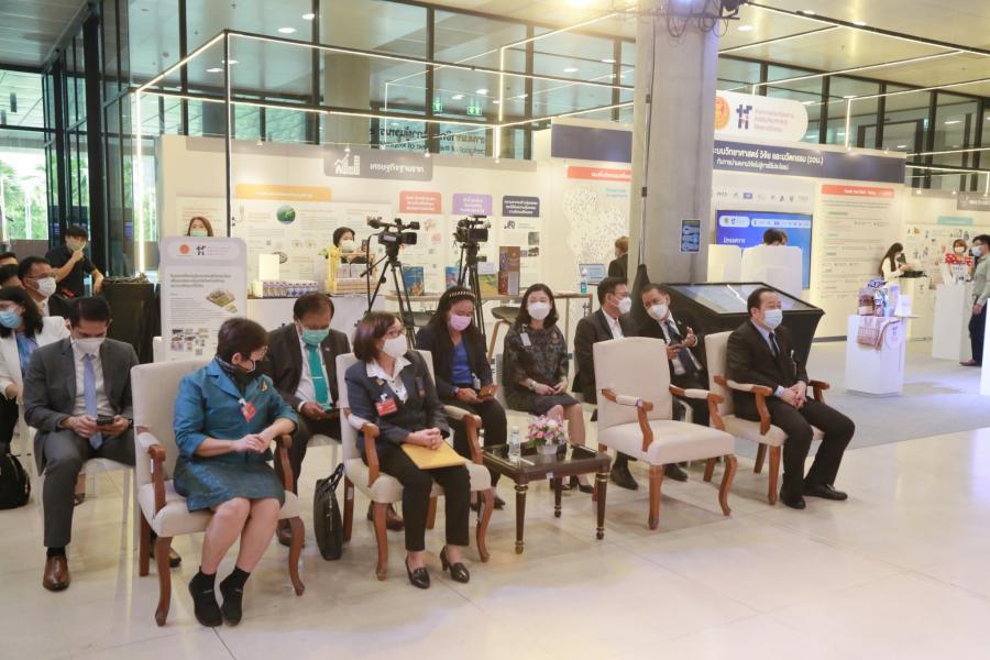 สำหรับการจัดแสดงนิทรรศการในครั้งนี้ เป็นความร่วมมือในการขับเคลื่อนนโยบายยุทธศาสตร์และแผนด้านวิทยาศาสตร์ วิจัยและนวัตกรรม ไปสู่การปฏิบัติอย่างเป็นรูปธรรม ตลอดจนการส่งเสริมให้เกิดการนำผลงานวิจัยและนวัตกรรมไปใช้ประโยชน์ในทุกมิติ ซึ่งจัดแสดงระหว่างวันที่ 11 - 26 ก.ค. 65 โดยนำเสนอผลงานวิจัยและนวัตกรรมที่เป็นประเด็นสำคัญ อาทิ การแพทย์และสุขภาพ อาหารมูลค่าสูง เศรษฐกิจฐานราก และสังคมคาร์บอนต่ำ รวมทั้งเป็นการเปิดพื้นที่ในการส่งต่อผลงานวิจัยไปยังผู้มีส่วนได้เสียทุกพื้นที่ ซึ่งจะเป็นประโยชน์ในการต่อยอดการพัฒนาเพื่อสร้างรายได้และสร้างความสามารถในการแข่งขันของประเทศ นอกจากนี้ ในวันที่ 25 ก.ค. 65 จะมีการประชุมเชิงนโยบายใน 2 หัวข้อเรื่อง คือ "พิเคราะห์ พ.ร.บ. โรคติดต่อ 2558" จากสถานการณ์โควิด-19 ข้อเสนอเพื่อการแก้ไขปรับปรุง" และ "สถานะสุขภาพคนไทยจากปัญหามลพิษทางอากาศ ความท้าทายใหม่ของต้นทุนการพัฒนาระยะยาว" เพื่อเป็นช่องทางสร้างการรับรู้และการมีส่วนร่วมให้กับผู้เกี่ยวข้องทั้งภาคนโยบายและหน่วยงานดำเนินการภาคปฏิบัติ นอกจากกิจกรรมดังกล่าวแล้ว สกสว. ได้ติดตั้งคอมพิวเตอร์และจอภาพแบบสัมผัสบริเวณหน้าห้องประชุมสภาผู้แทนราษฎร เพื่อเป็นการเพิ่มช่องทางและอำนวยความสะดวกในการสืบค้นข้อมูลวิจัยให้สมาชิกรัฐสภา และมีโครงการยกระดับกลไกในการเชื่อมโยงงานวิจัยและนวัตกรรมกับฝ่ายนิติบัญญัติ โดยเป็นรูปแบบการจัดมุม ววน. ในหอสมุดรัฐสภา ชั้น 9 เพื่อเผยแพร่ข้อมูลวิจัยให้สะดวกแก่การสืบค้น ทั้งการสืบค้นจากเอกสารบนชั้นวาง และสืบค้นจากคอมพิวเตอร์ตั้งโต๊ะ