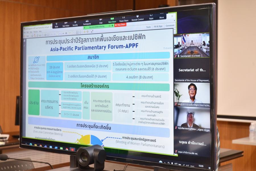 วันพุธที่ 20 กรกฎาคม 2565 เวลา 10.00 นาฬิกา ณ ห้องประชุมคณะกรรมการบริหารหน่วยประจำชาติไทย 406 ชั้น 4 อาคารรัฐสภา นายวีระศักดิ์ โควสุรัตน์ สมาชิกวุฒิสภา เป็นประธานคณะอนุกรรมการด้านเศรษฐกิจและการค้า ในการประชุมรัฐสภาประจำปีภาคพื้นเอเชียและแปซิฟิก ครั้งที่ 30 ครั้งที่ 1/2565 ผ่านสื่ออิเล็กทรอนิกส์ โดยมี นายพิสิฐ ลี้อาธรรม สมาชิกสภาผู้แทนราษฎร เข้าร่วมประชุม เพื่อเตรียมการเป็นเจ้าภาพการจัดประชุมประจำปีรัฐสภาภาคพื้นเอเชียและแปซิฟิก ครั้งที่ 30 (Asia-Pacific Parliamentary Forum APPF) ซึ่งรัฐสภาไทยจะเป็นเจ้าภาพในวันที่ 26 - 29 ตุลาคม 2565 โดยที่ประชุมได้รับทราบ 1. คำสั่งคณะกรรมการอำนวยการการจัดการประชุมประจำปีรัฐสภาภาคพื้นเอเชียและแปซิฟิก (APPF) ครั้งที่ 30 ที่ 2/2565 เรื่อง แต่งตั้งคณะอนุกรรมการด้านต่าง ๆ ในการเป็นเจ้าภาพจัดการประชุม APPF ครั้งที่ 30 (เพิ่มเติม) 2. ภูมิหลังและความเป็นมาการจัดการประชุม APPF ครั้งที่ 30 3. กำหนดการประชุม APPF ครั้งที่ 30 และ 4. การปรับแก้ไขหัวข้อวาระการประชุมวาระที่ 2 ด้านเศรษฐกิจและการค้า