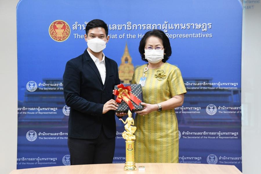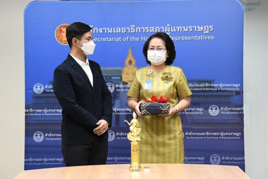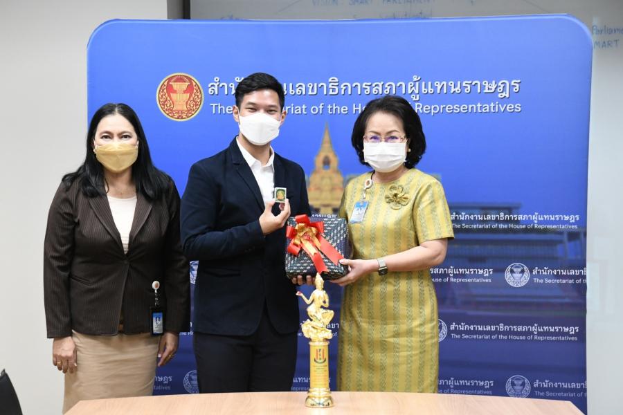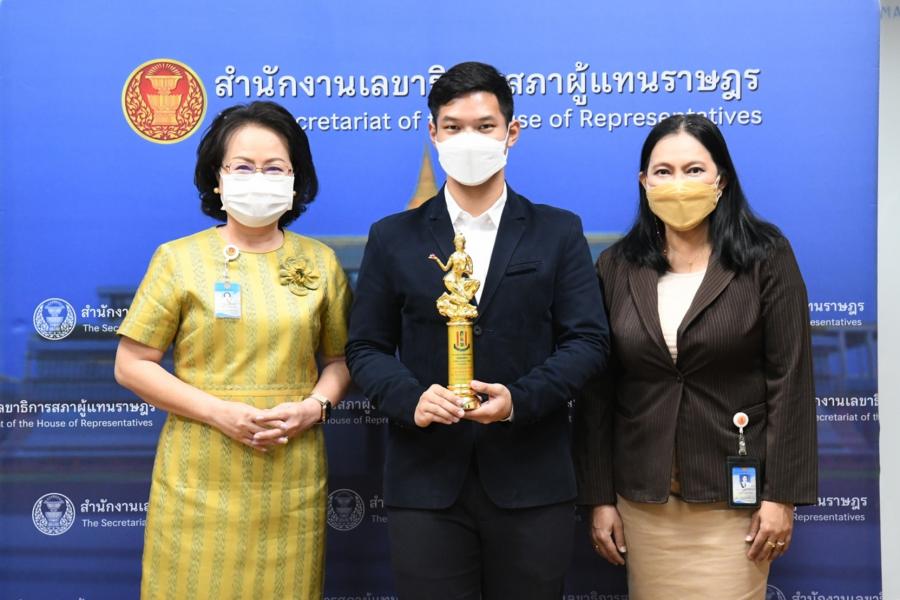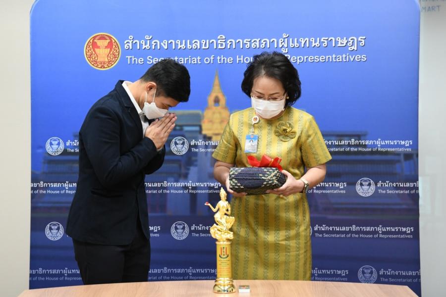 เลขาธิการสภาผู้แทนราษฎร แสดงความยินดีกับนายณรงค์ฤทธิ์ คิดเห็น พนักงานวิชาการจัดรายการวิทยุ กลุ่มงานผลิตรายการวิทยุกระจายเสียง สถานีวิทยุกระจายเสียงและวิทยุโทรทัศน์รัฐสภา ในโอกาสได้รับ รางวัลเกียรติยศมณีเมขลา ครั้งที่ 3 ประจำปี 2565