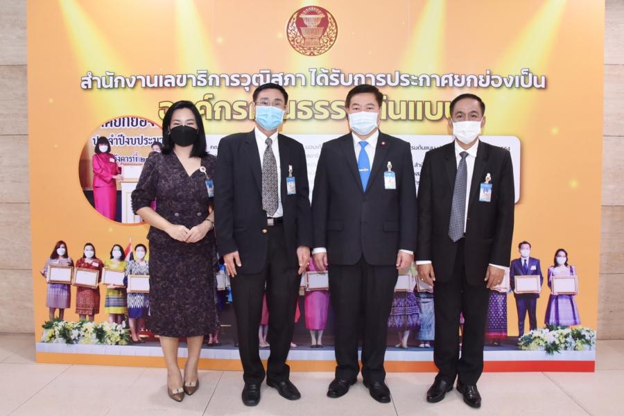 วันอังคารที่ 6 กันยายน 2565 เวลา 09.20 นาฬิกา ณ ห้องประชุม 402403 ชั้น 4 อาคารรัฐสภา ศ.พิเศษพรเพชร วิชิตชลชัย ประธานวุฒิสภา เป็นประธานในพิธีมอบโล่เกียรติยศ "องค์กรคนดี" ในการนี้ นายคุณวุฒิ ตันตระกูล รองเลขาธิการสภาผู้แทนราษฎร เข้ารับโล่เกียรติยศ "องค์กรคนดี" ในฐานะที่สำนักงานเลขาธิการสภาผู้แทนราษฎร ได้รับการคัดเลือกเป็นองค์กรคนดี ประจำปี 2565 ตามที่คณะ กมธ.การศาสนา คุณธรรม จริยธรรม ศิลปะและวัฒนธรรม วุฒิสภา ร่วมกับคณะทำงานคนดี สังคมดี พิจารณาสรรหาและคัดเลือกองค์กรภาครัฐ ภาคเอกชน และภาคประชาสังคม ที่ยึดหลักคุณธรรม จริยธรรม และหลักธรรมาภิบาล ในการบริหารงานให้เป็นที่ประจักษ์ในสังคม มีผู้นำองค์กรเป็นแบบอย่างและมีบทบาทสำคัญในการส่งเสริมกิจกรรมสร้างคนดีให้เกิดขึ้นในสังคม เป็นต้นแบบองค์กรคนดีที่สามารถแนะนำวิธีพัฒนาศักยภาพของบุคลากรภายในองค์กรให้เป็นผู้มีความรู้ความสามารถ และมีคุณธรรมจริยธรรม และสามารถขยายผลไปสู่องค์กรอื่นของประเทศได้อย่างเป็นรูปธรรม โดยมี นายมหรรณพ เดชวิทักษ์ ประธานคณะกมธ.การศาสนา คุณธรรม จริยธรรม ศิลปะและวัฒนธรรม วุฒิสภา นางศิรินา ปวโรราฬวิทยา รองประธานคณะ กมธ.การศาสนาฯ คนที่สี่ และประธานคณะอนุ กมธ.ด้านคุณธรรมและจริยธรรม พล.อ.อ.วีรวิท คงศักดิ์ ประธานคณะทำงานคนดี สังคมดี สมาชิกวุฒิสภา และแขกผู้มีเกียรติ ร่วมพิธี