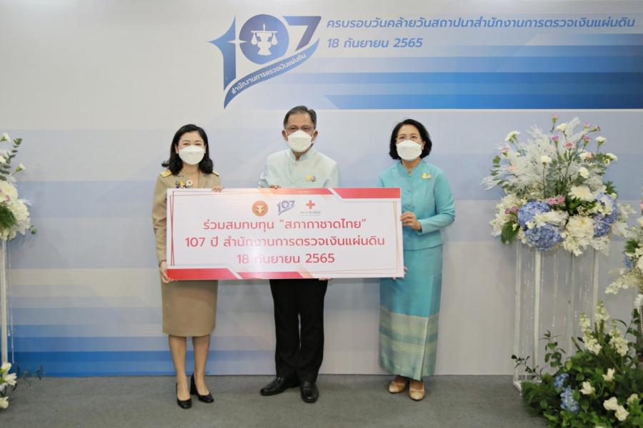 วันจันทร์ที่ 19 กันยายน 2565 เวลา 09.30 นาฬิกา ณ สำนักงานการตรวจเงินแผ่นดิน ถนนพระรามที่ 6 แขวงพญาไท เขตพญาไท กรุงเทพฯ นางพรพิศ เพชรเจริญ เลขาธิการสภาผู้แทนราษฎร มอบหมายให้ นางจงเดือน สุทธิรัตน์ ที่ปรึกษาด้านระบบงานนิติบัญญัติ เข้าร่วมเป็นเกียรติเนื่องในโอกาสวันคล้ายวันสถาปนาสำนักงานการตรวจเงินแผ่นดินครบรอบ 107 ปี พร้อมทั้ง ร่วมบริจาคเงินสมทบทุน “สภากาชาดไทย” 107 ปี สำนักงานการตรวจเงินแผ่นดิน 18 ก.ย. 65 โดยมี นายประจักษ์ บุญยังผู้ว่าการตรวจเงินแผ่นดิน พร้อมด้วยนางเกล็ดนที มโนสันติ์ รองผู้ว่าการตรวจเงินแผ่นดิน ร่วมรับมอบ