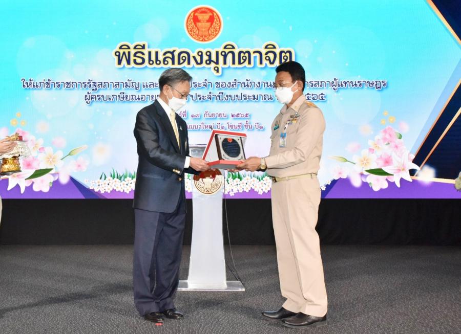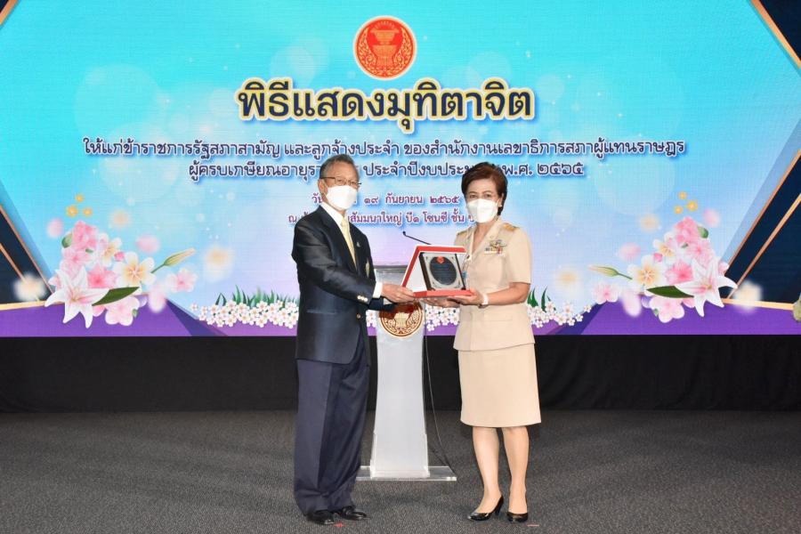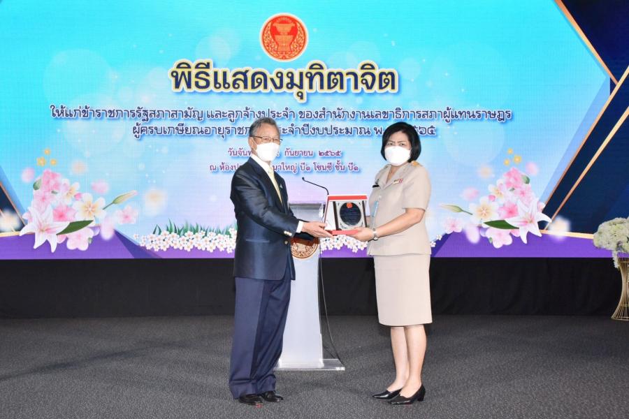 ประธานรัฐสภา เป็นประธานในพิธีแสดงมุทิตาจิตแก่ข้าราชการรัฐสภาสามัญ ลูกจ้างประจำ ผู้เกษียณอายุราชการ ประจำปีงบประมาณ 2565