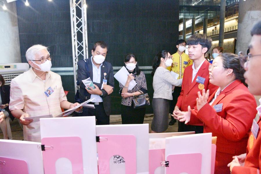 น.ส.โสมอุษา บูรณะเหตุ รองเลขาธิการสภาผู้แทนราษฎร ในฐานะรองประธานกรรมการจัดการประกวดนวัตกรรมเพื่อการพัฒนาประชาธิปไตย ปี 2565 พร้อมด้วยคณะกรรมการฯ ร่วมตรวจเยี่ยมการนำเสนอบูธนิทรรศการและรับฟังการสรุปประเด็นนวัตกรรมเพื่อการพัฒนาของผู้เข้าประกวดพร้อมด้วยคณะกรรมการฯ ร่วมตรวจเยี่ยมการนำเสนอบูธนิทรรศการและรับฟังการสรุปประเด็นนวัตกรรมเพื่อการพัฒนาของผู้เข้าประกวดพร้อมด้วยคณะกรรมการฯ ร่วมตรวจเยี่ยมการนำเสนอบูธนิทรรศการและรับฟังการสรุปประเด็นนวัตกรรมเพื่อการพัฒนาของผู้เข้าประกวดที่ผ่านเข้ารอบชนะเลิศ