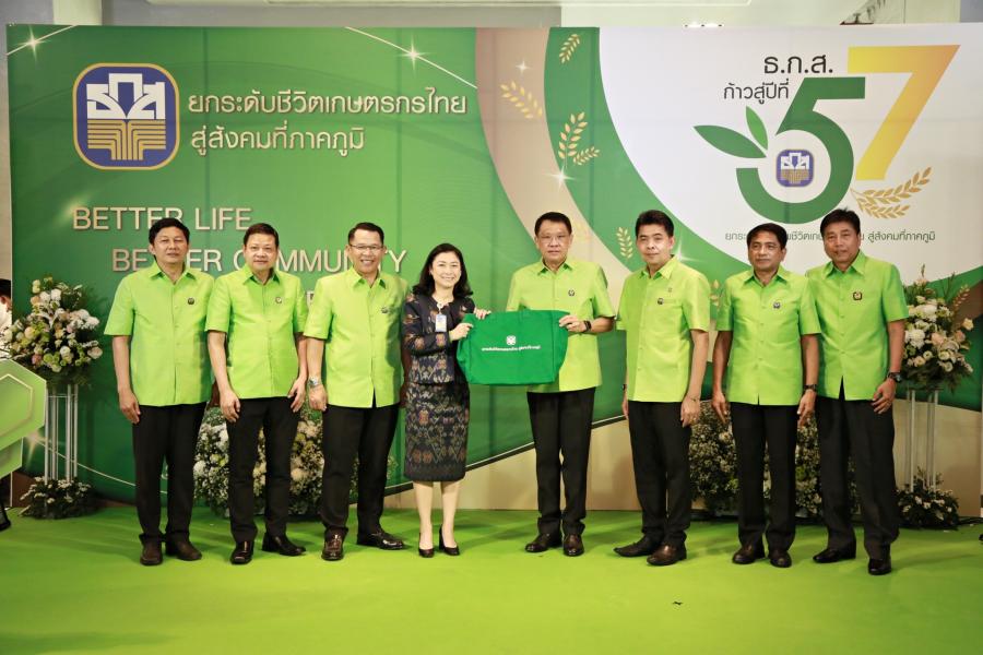 สำนักงานใหญ่ ถ.พหลโยธิน เขตจตุจักร กรุงเทพฯ นางพรพิศ เพชรเจริญ เลขาธิการสภาผู้แทนราษฎร มอบหมายให้ นางจงเดือน สุทธิรัตน์ ที่ปรึกษาด้านระบบงานนิติบัญญัติร่วมแสดงความยินดีในโอกาสครบรอบวันสถาปนาธนาคารเพื่อการเกษตรและสหกรณ์การเกษตรก้าวสู่ปีที่ 57 ประจำปี 2565
