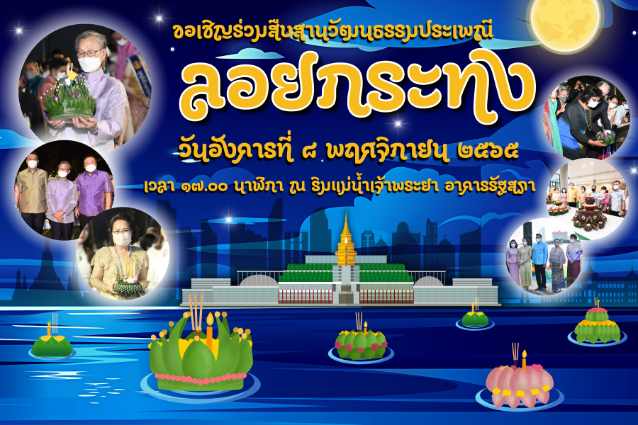 ขอเชิญทุกท่านร่วมงาน "รัฐสภาร่วมใจ สืบสานประเพณีไทย สุขใจวันลอยกระทง" วันอังคารที่ 8 พ.ย. 65 ตั้งแต่เวลา 16.00 น. เป็นต้นไป