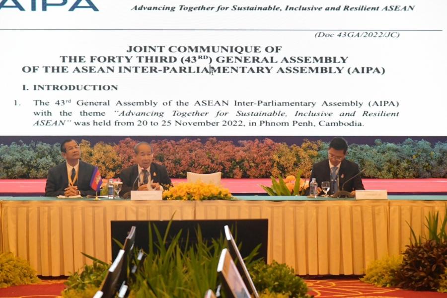 เมื่อวันพุธที่ 23 พฤศจิกายน 2565 เวลา 16.30-18.00 นาฬิกา ณ กรุงพนมเปญ ราชอาณาจักรกัมพูชา นายอนุศักดิ์  คงมาลัย สมาชิกวุฒิสภา ในฐานะหัวหน้าคณะผู้แทนรัฐสภาไทยในการประชุมคณะกรรมาธิการยกร่างแถลงการณ์ร่วม ร่วมกับผู้แทนรัฐสภาจากประเทศสมาชิก ที่ประชุมได้พิจารณาและรับรองระเบียบวาระการประชุม จากนั้นได้ร่วมกันพิจารณาเนื้อหาและสาระสำคัญของร่างแถลงการณ์ร่วมที่กอปรไปด้วยสรุปผลการประชุมต่าง ๆ ระหว่างการประชุมใหญ่สมัชชารัฐสภาอาเซียน ครั้งที่ 43 และให้การรับรองในท้ายที่สุด