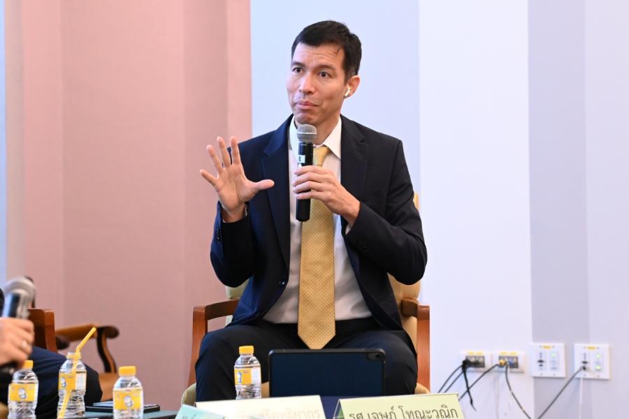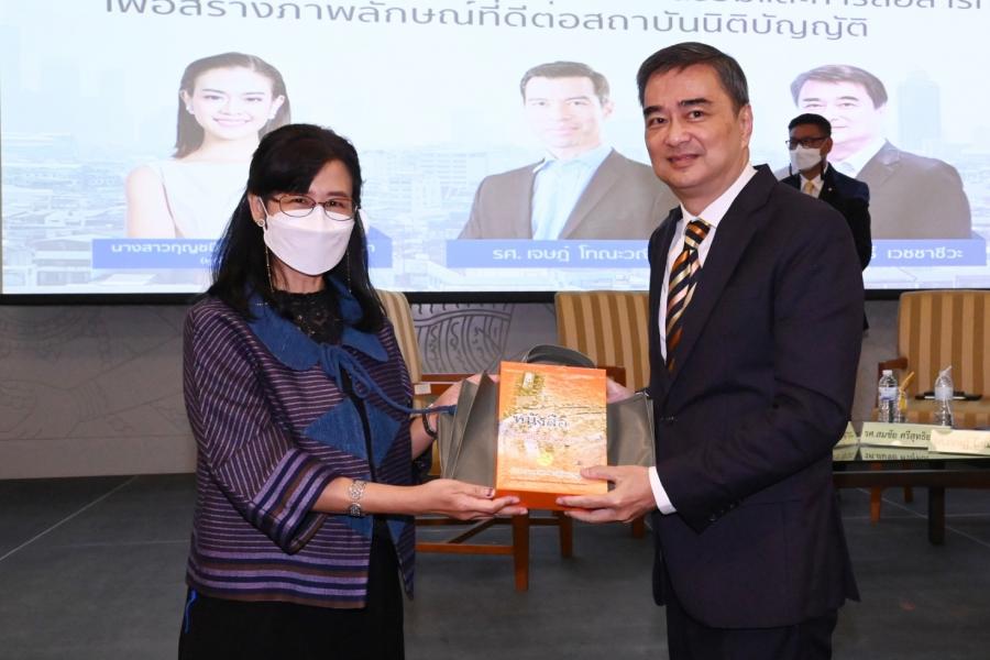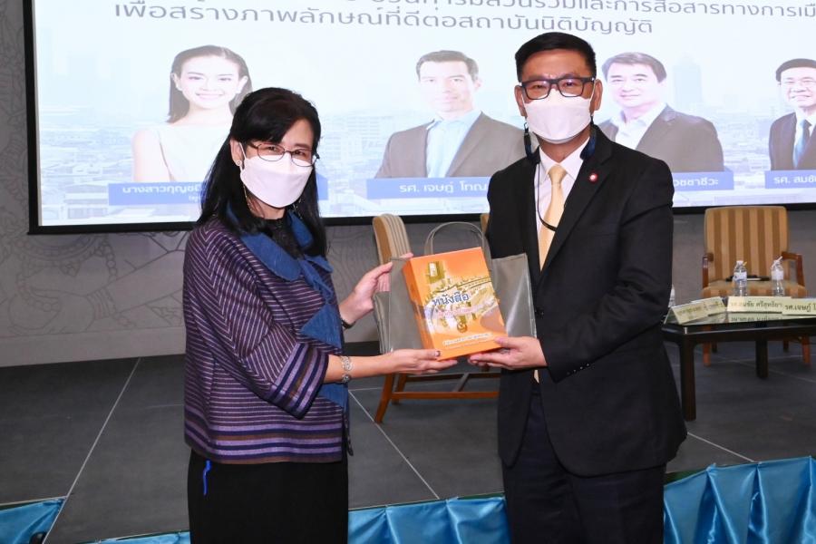 จากนั้น เวลา 10.00 – 12.00 น. นายอภิสิทธิ์ เวชชาชีวะ อดีตนายกรัฐมนตรี รศ.สมชัย ศรีสุทธิยากร อดีตโฆษกคณะ กมธ.วิสามัญพิจารณาร่าง พ.ร.บ.ประกอบรัฐธรรมนูญว่าด้วยการเลือกตั้งสมาชิกสภาผู้แทนราษฎร (ฉบับที่ ..) พ.ศ. .... และ รศ.เจษฎ์ โทณะวณิก ประธานคณะนิติศาสตร์ วิทยาลัยบัณฑิตเอเชีย ให้เกียรติเป็นวิทยาการร่วมเสวนา เรื่อง "กติกาเลือกตั้งใหม่..ใครได้ประโยชน์?” ดำเนินรายการโดย น.ส.กุญชนิตา กุญชร ณ อยุธยา ผู้ประกาศข่าว Nation TV โดยมี น.ส.ผ่องศรี ธาราภูมิ โฆษกประธานสภาผู้แทนราษฎร คณะทำงานทางการเมืองของประธานสภาผู้แทนราษฎร ผู้บริหาร และบุคลากรสำนักงานเลขาธิการสภาผู้แทนราษฎร ร่วมรับฟังการเสวนา โอกาสนี้ นางอัจฉรา จูยืนยง ผู้อำนวยการสำนักประชาสัมพันธ์ มอบของที่ระลึกให้แก่วิทยากร เพื่อแสดงความขอบคุณ ทั้งนี้ ในภาคบ่าย จะเป็นการบรรยายเรื่อง “แนวทางการสื่อสารทางการเมืองให้กับประชาชน เพื่อสร้างภาพลักษณ์ที่ดีต่อสถาบันนิติบัญญัติ” โดย นายธาม เชื้อสถาปนศิริ ผู้ช่วยผู้อำนวยการฝ่ายขับเคลื่อนนโยบายและสื่อสารสาธารณะ มหาวิทยาลัยมหิดล
