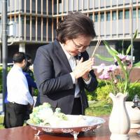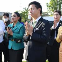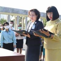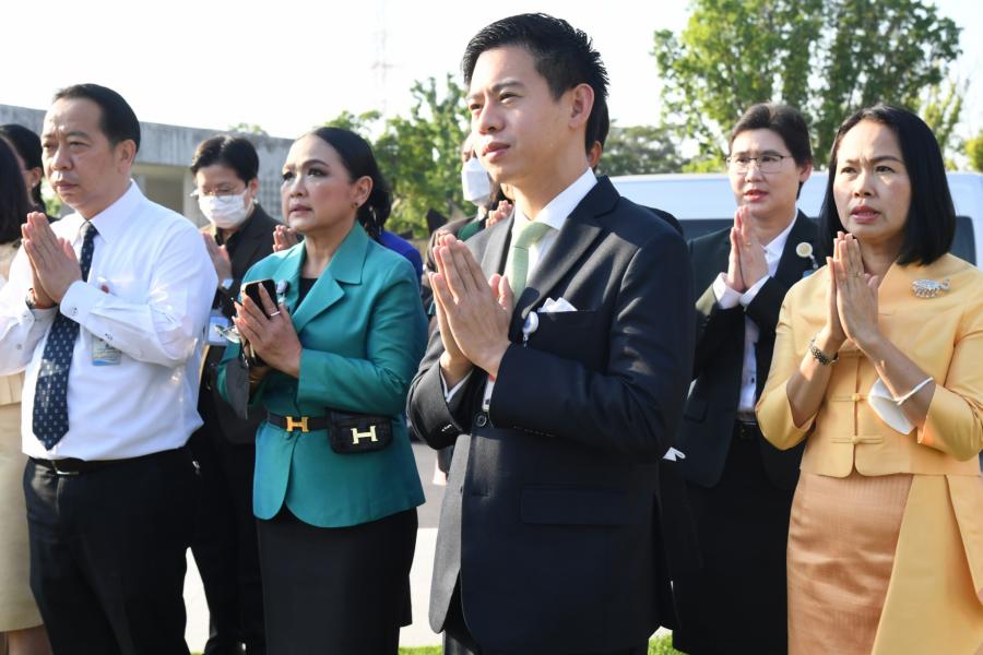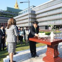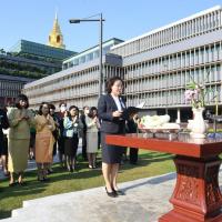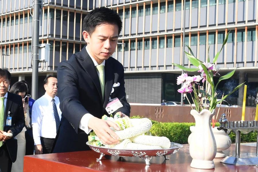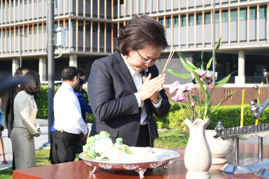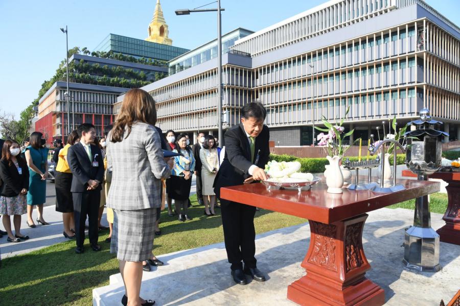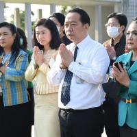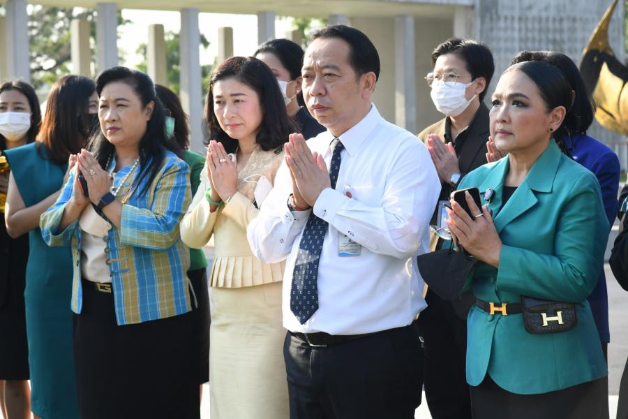 พิธีถวายพวงมาลัยและจุดธูปเทียน สักการะพระสยามเทวาธิราช พระเสื้อเมือง พระทรงเมือง พระภูมิชัยมงคล และศาลตา - ยาย ในพิธีอัญเชิญพระบรมราชานุสาวรีย์พระบาทสมเด็จพระปกเกล้าเจ้าอยู่หัว (พระองค์เดิม) จากสำนักช่างสิบหมู่ กรมศิลปากร อ.พุทธมณฑล จ.นครปฐม มาประดิษฐาน ณ อาคารรัฐสภา
