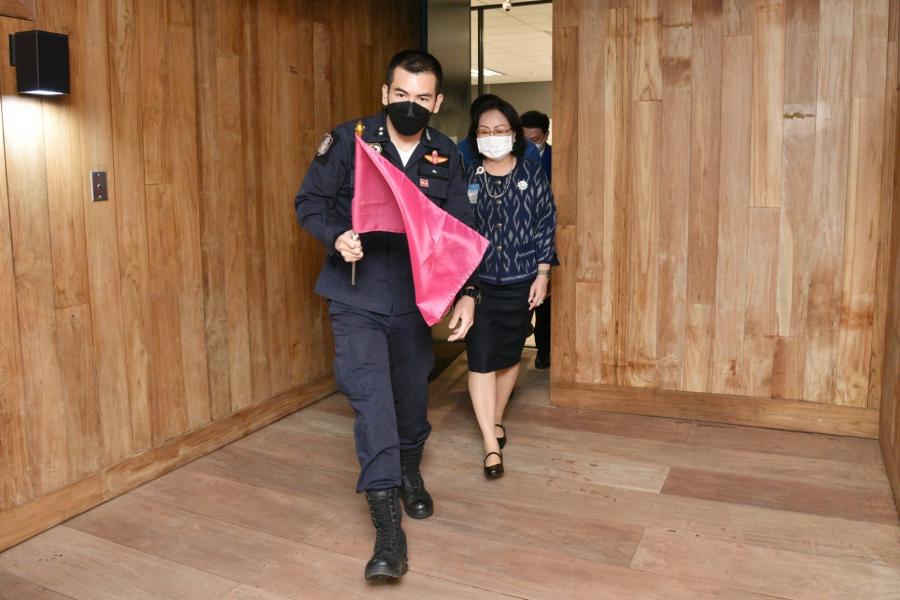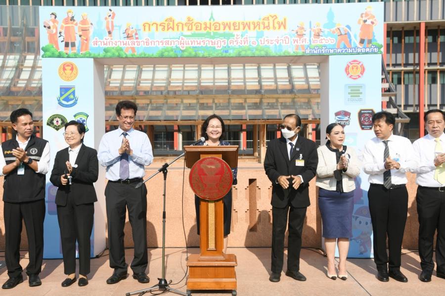 เลขาธิการสภาผู้แทนราษฎร พร้อมด้วยผู้บริหารและบุคลากรสำนักงานเลขาธิการสภาผู้แทนราษฎร เข้าร่วมการฝึกซ้อมอพยพหนีไฟ ประจำปี 2566
