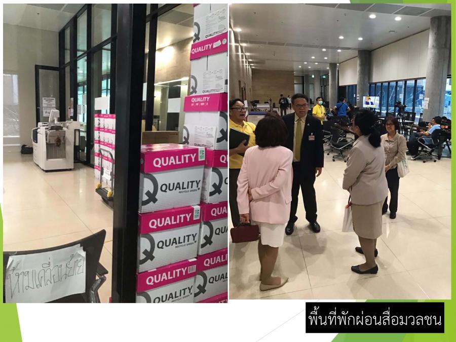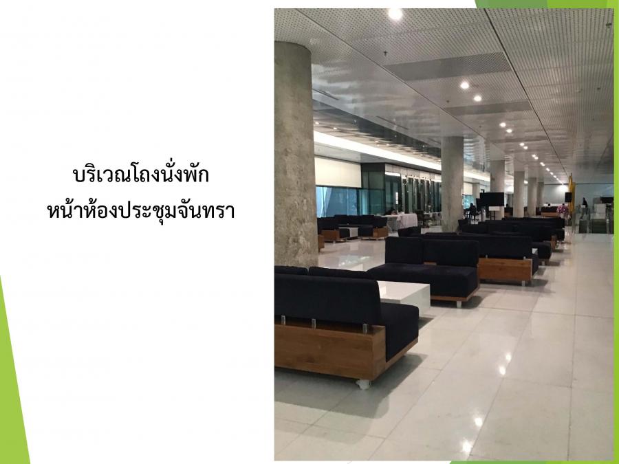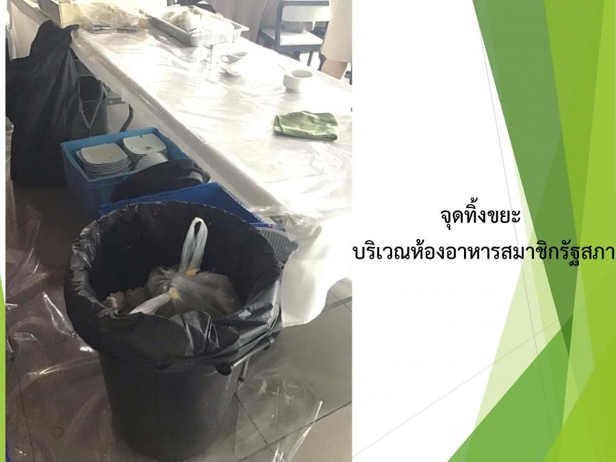 ขยะทั่วไป ขยะรีไซเคิลในห้องประชุมบริเวณทางเดิน ห้องสุขา ห้องเตรียมอาหาร ห้องพักแม่บ้าน และบริเวณรอบห้องประชุมในอาคารรัฐสภาและขยะอันตรายภายนอกอาคาร - การกำหนดพื้นที่สูบบุหรี่ และพื้นที่สีเขียว