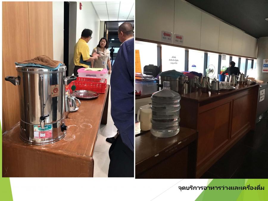 พื้นที่/ห้องเตรียมอาหารว่าง เครื่องดื่มในการประชุม พื้นที่/ห้องรับประทานอาหารบุคลากรในสำนักงานให้ชัดเจน