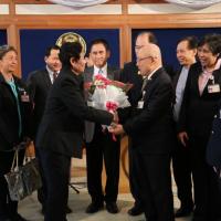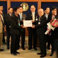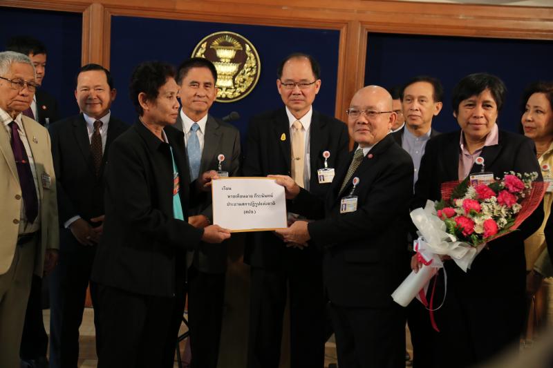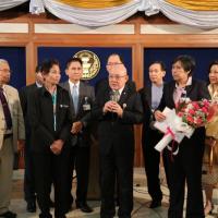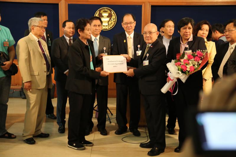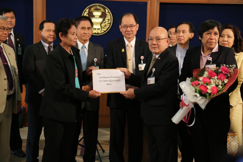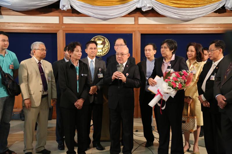 ประธาน สปช.รับมอบช่อดอกไม้จากตัวแทนสมาคมสหพันธ์องค์กรผู้บรืโภค