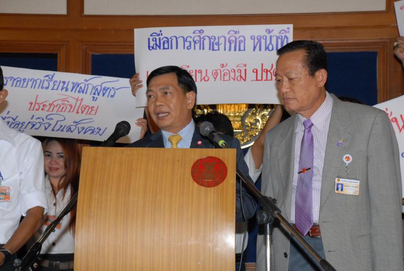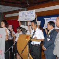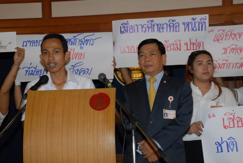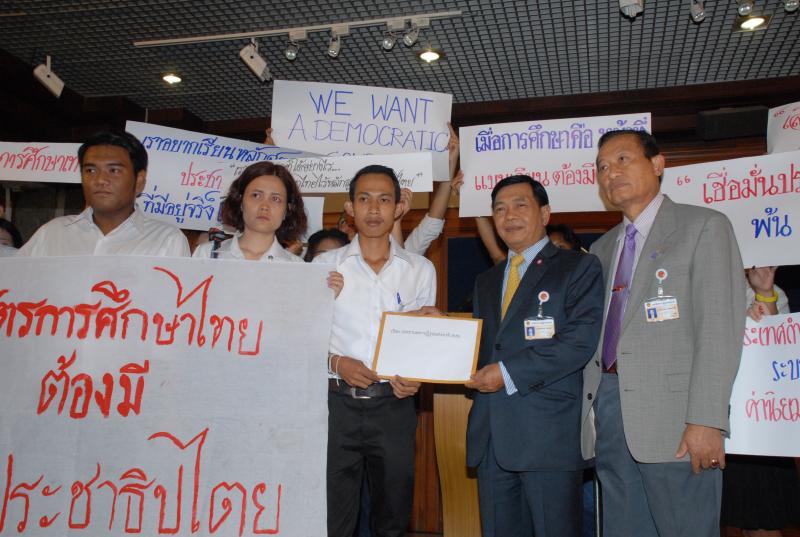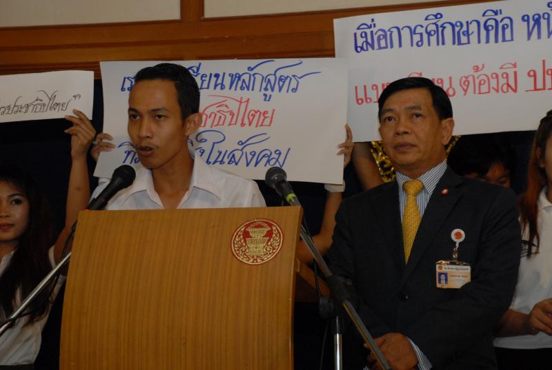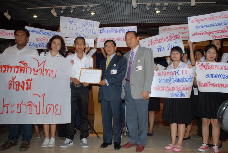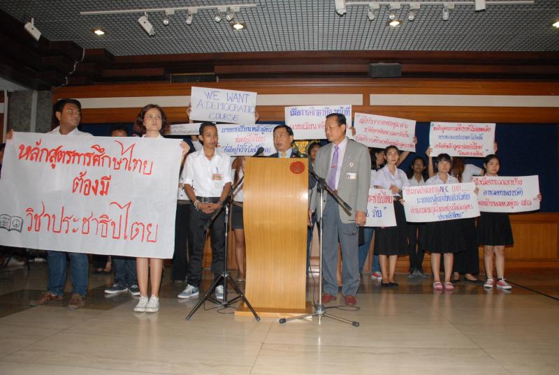 วันศุกร์ที่ ๒๔ เมษายน ๒๕๕๘ เวลา ๑๓.๓๐ นาฬิกา ณ บริเวณ อาคารรัฐสภา ๑ นายอลงกรณ์ พลบุตร เลขานุการวิปสปช.และนายไพโรจน์ พรหมสาส์น ประธานกรรมาธิการวิสามัญจัดทำวิสัยทัศน์และออกแบบอนาคตประเทศไทย รับยื่นหนังสือจากตัวแทนกลุ่มเสียงจากคนหนุ่มสาว เพื่อเสนอให้บัญญัติวิชาประชาธิปไตย ลงในหลักสูตรการศึกษาไทย โดยมีข้อเรียกร้องดังต่อไปนี้