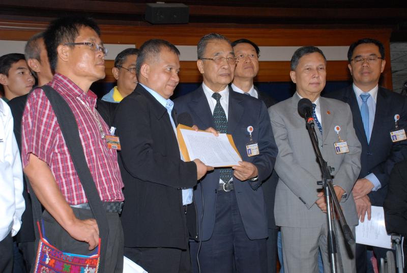 นายมานิจ สุขสมจิตร รองประธานกรรมาธิการยกร่างรัฐธรรมนูญ รับหนังสือจากนายมณเฑียร