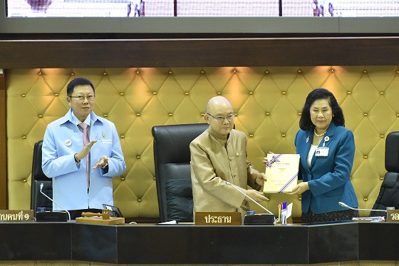 รัฐธรรมนูญ และรองศาสตราจารย์ทัศนา บุญทอง รองประธานสภาปฏิรูปแห่งชาติ  คนที่สอง  รับมอบร่าง