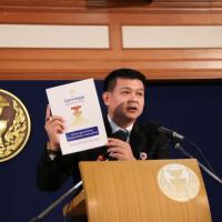 นายสิระ เจนจาคะ สมาชิกสปช. แถลงข่าวกรณีที่รัฐธรรมนูญไม่ผ่านการเห็นชอบจากที่ประชุมสภาปฏิรูปแห่งชาติ