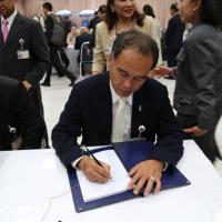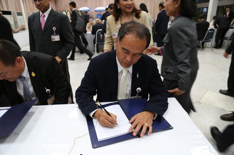 ประธานสภาปฏิรูปแห่งชาติ พร้อมรองประธานประธานฯ และสมาชิกสปช. ลงนามถวายพระพรพระบาทสมเด็จพระเจ้าอยู่หัว