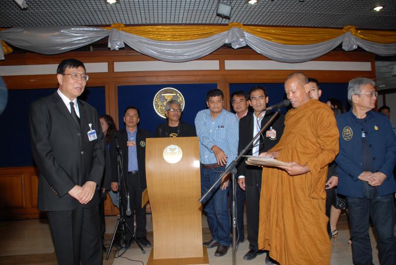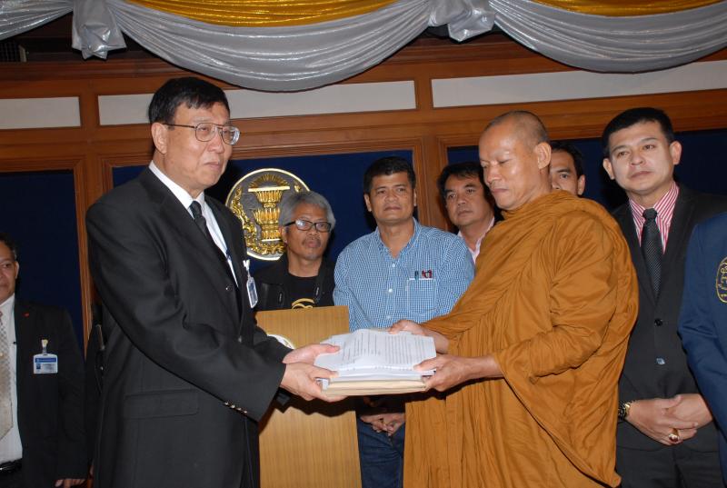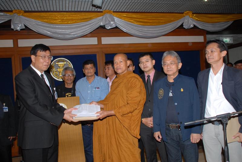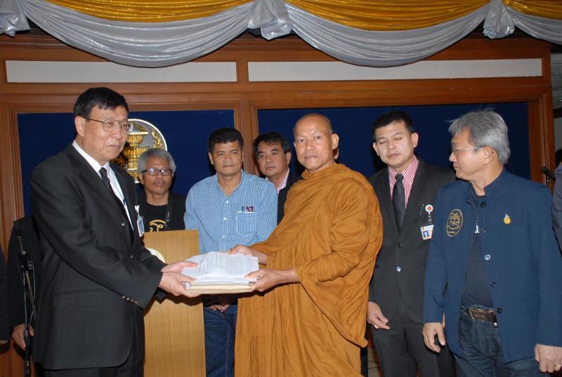 พรเพชร วิชิตชลชัย ประธานสภานิติบัญญัติแห่งชาติ รับหนังสือจากหลวงปู่พุทธะอิสระ เกี่ยวกับข้อเสนอจาก