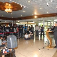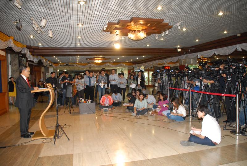 วันพุธที่ ๑๙ พฤศจิกายน ๒๕๕๗ เวลา ๑๒.๓๐ นาฬิกา ณ บริเวณห้องโถง อาคารรัฐสภา ๑ พลเอกเลิศรัตน์