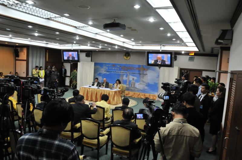 การแถลงข่าวพิธีส่งมอบรายงานสรุปความคิดเห็นและข้อเสนอแนะในการจัดทำร่างรัฐธรรมนูญ