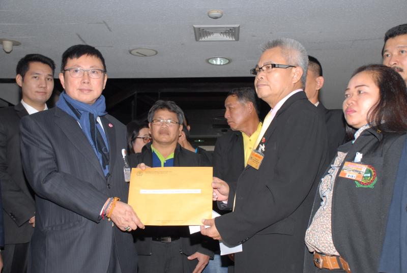 ศ.บวรศักดิ์ อุวรรณโณ ประธานกรรมาธิการยกร่างรัฐธรรมนูญ รับยื่นข้อเสนอการปฏิรูปด้านแรงงานเพื่อบัญญัติไว้ในรัฐธรรมนูญ