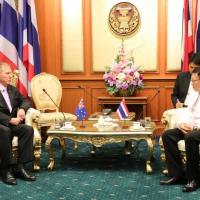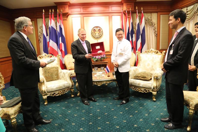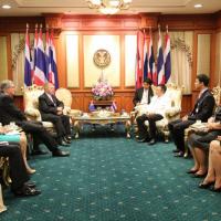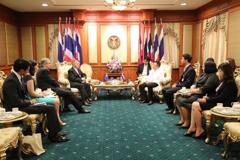 | วันอังคารที่ ๒๗ มกราคม ๒๕๕๘ เวลา ๑๔.๐๐ นาฬิกา ณ ห้องรับรอง ชั้น ๒ อาคารรัฐสภา ๑ ศาสตราจารย์บวรศักดิ์ อุวรรณโณ รองประธานสภาปฏิรูปแห่งชาติ คนที่หนึ่ง และประธานกรรมาธิการยกร่างรัฐธรรมนูญ พร้อมด้วยนายเจษฎ์ โทณะวณิก กรรมาธิการยกร่างรัฐธรรมนูญ ให้การรับรอง นายไมเคิล เคอร์บี อดีตผู้พิพากษาศาลสูงเครือรัฐออสเตรเลีย เพื่อหารือเกี่ยวอำนาจหน้าที่ และบทบาทของฝ่ายตุลาการ และองค์กรอิสระตามรัฐธรรมนูญ พร้อมทั้งซักถามถึงความคืบหน้าในการยกร่างรัฐธรรมนูญ โดยประธานกรรมาธิการยกร่างรัฐธรรมนูญ ได้ตอบชี้แจงถึงความคืบหน้าของการยกร่างรัฐธรรมนูญ |