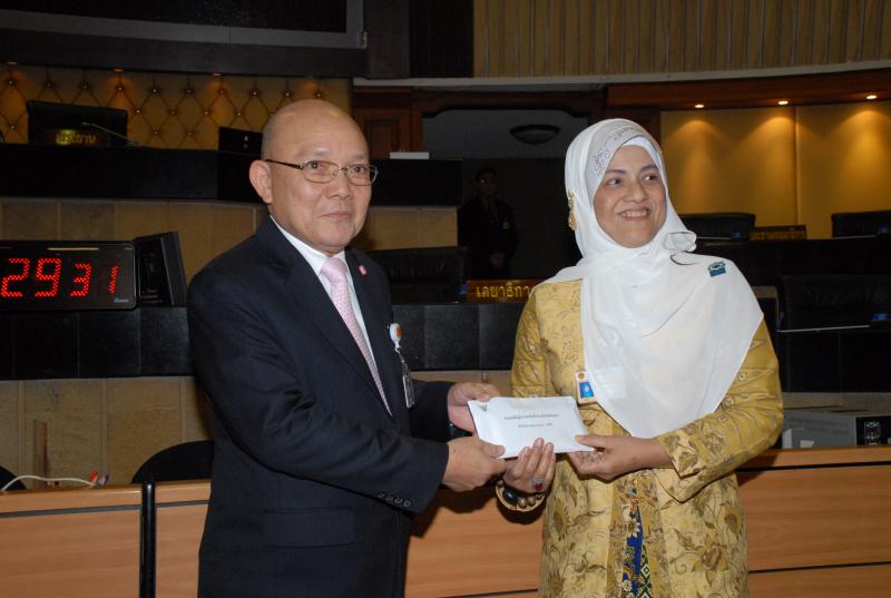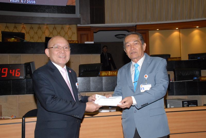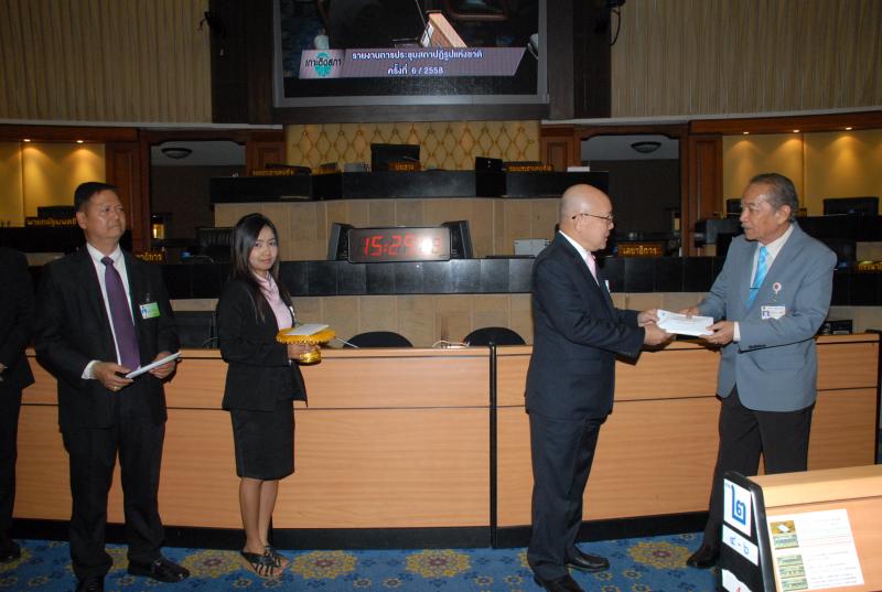 ประธานสภาปฏิรูปแห่งชาติ รองประธานสภาปฏิรูปแห่งชาติ พร้อมด้วยสมาชิกสภาปฏิรูปแห่งชาติ มอบเงินบริจาคเพื่อช่วยเหลือผู้ประสบภัยน้ำท่วมภาคใต้