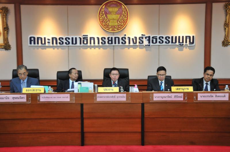 และคณะ แถลงข่าวภายหลังเสร็จสิ้นการประชุมคณะกรรมาธิการยกร่างรัฐธรรมนูญในช่วงบ่าย