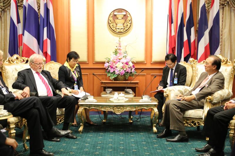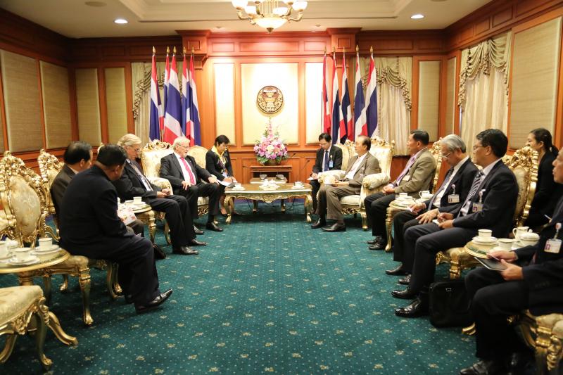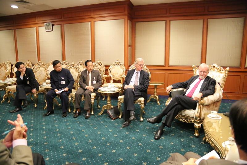 วันจันทร์ที่ ๒ กุมภาพันธ์ ๒๕๕๘ เวลา ๑๕.๐๐ นาฬิกา ณ ห้องรับรอง ชั้น ๒ อาคารรัฐสภา ๑ นายสมบัติ ธำรงธัญวงศ์ ประธานกรรมาธิการปฏิรูปการเมือง พร้อมด้วยนายดิเรก ถึงฝั่ง รองประธานกรรมาธิการ คนที่หนึ่ง และกรรมาธิการปฏิรูปการเมือง ร่วมกันให้การรับรอง Sir Robin Chirstopher ผู้อำนวยการ Global Leader Foundation Project เพื่อแลกเปลี่ยนข้อคิดเห็นต่างๆ ในการยกร่างรัฐธรรมนูญ และประเด็นต่างๆ เกี่ยวกับการปฏิรูปการเมืองของประเทศไทย โดยประธานกรรมาธิการฯ ได้ชี้แจงถึงกระบวนการทำงานของคณะกรรมาธิการฯ และความคืบหน้าในการทำงานของคณะกรรมาธิการยกร่างรัฐธรรมนูญ ในส่วนของคณะกรรมาธิการปฏฺิรูปการเมืองนั้น ได้มีการประชุมกันเพื่อรวบรวมและหาข้อคิดเห็นต่างๆ เพื่อทำให้ระบบการเมือง ระบบการเลือกตั้ง ระบบพรรคการเมือง และพรรคการเมืองมีความเข้มแข็ง สามารถตรวจสอบได้ และมีอิสระปราศจากนายทุนครอบงำ เพื่อให้มีคนดีเข้ามาบริหารประเทศ ป้องกันและขจัดการทุจริตคอรัปชั่น |