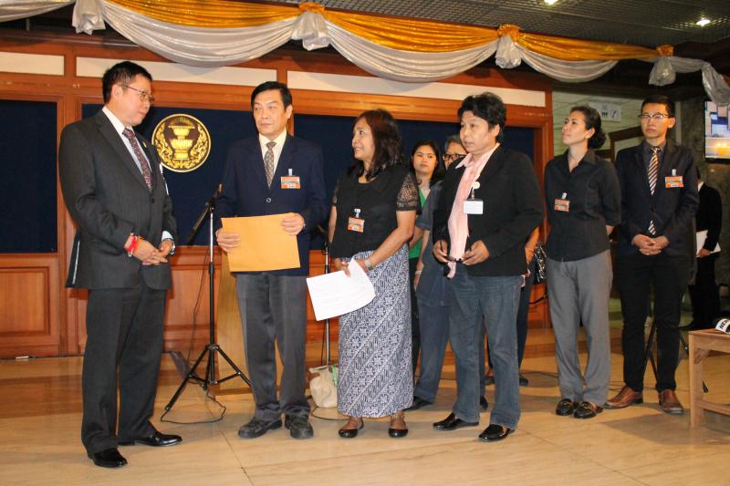 ศาสตราจารย์บวรศักดิ์ อุวรรณโณ ประธานกรรมาธิการยกร่างรัฐธรรมนูญรับยื่นข้อเสนอคัดค้าน