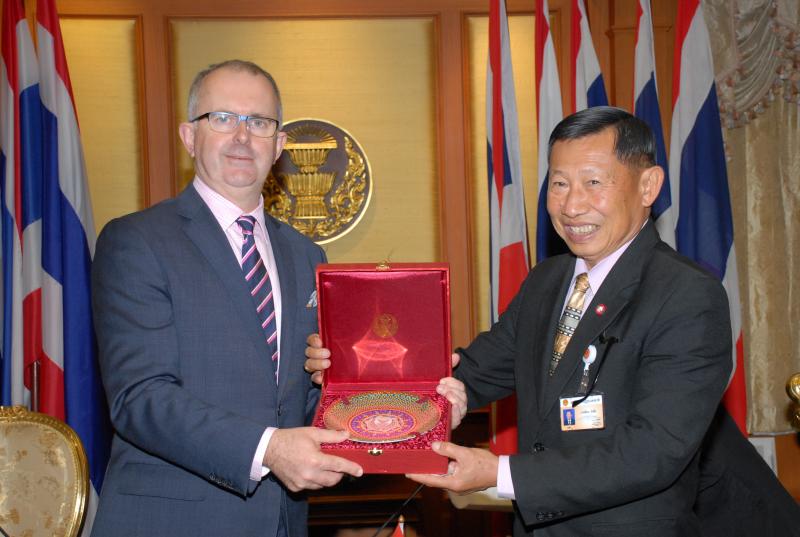 นายดิเรก ถึงฝั่ง รองประธานกรรมาธิการปฏิรูปการเมือง คนที่หนึ่ง ให้การต้อนรับ Mr.Tom Rogets