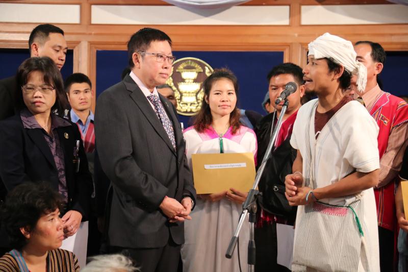 ประธานกรรมาธิการยกร่างรัฐธรรมนูญ รับหนังสือจากตัวแทนขบวนการกะเหรี่ยงเพื่อฟื้นฟูวิถีวัฒนธรรมและจิตวิญญาณ