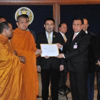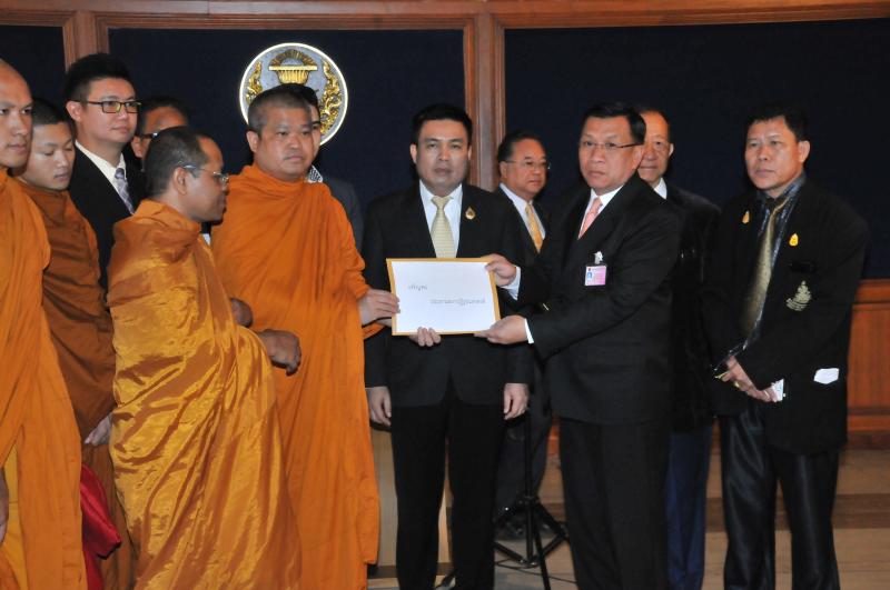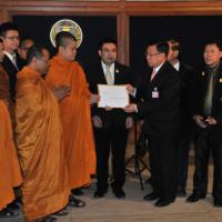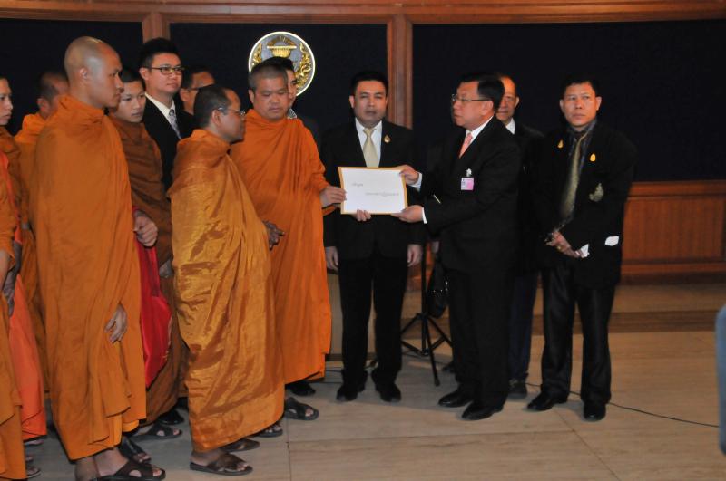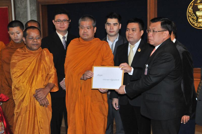 ผู้อำนวยการสำนักงานประธานสภาผู้แทนราษฎรเป็นตัวแทนประธานสภาปฏิรูปแห่งชาติรับมอบหนังสือจากพระเมธีธรรมาจารย์