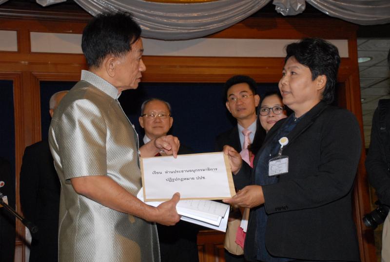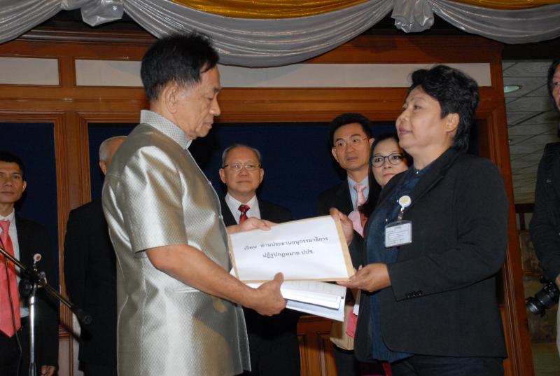 รองประธานกรรมาธิการปฏิรูปการป้องกันและปราบปรามการทุจริตและประพฤติมิชอบ รับยื่นหนังสือจากนางสาวบุญยืน ศิริธรรม ประธานสหพันธ์องค์กรผู้บริโภค