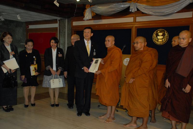 วันอังคารที่ ๓ มีนาคม ๒๕๕๘ เวลา ๑๓.๓๐ นาฬิกา นายไพบูลย์ นิติตะวัน ประธานคณะกรรมการปฏิรูปแนวทางและการป้องกันกิจการพระพุทธศาสนา รับหนังสือจากพระมหาสมบูรณ์ ฉนฺทโก วัดเขาสนามชัย อำเภอหัวหิน จังหวัดประจวบคีรีขันธ์ ในนามคณะพุทธบริษัทสภาเพื่อรักษาพระธรรมวินัย (พสธ.) เพื่อเสนอแนะแผนงานพัฒนาและส่งเสริมกิจการในพระพุทธศาสนา เพื่อเป็นแนวทางในการปฏิรูปกิจการพระพุทธศาสนา ภายหลังจากรับหนังสือแล้ว นายไพบูลย์ ได้กล่าวว่าจะน้อมนำคำแนะนำที่พระอาจารย์ได้แนะนำ นำเข้าสู่การพิจารณาในที่ประชุมคณะกรรมการฯ เพื่อนำไปเป็นแนวทางในการปฏิรูปกิจการที่เกี่ยวข้องกับพระพุทธศาสนาต่อไป |