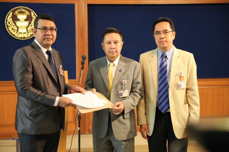 โฆษกกรรมาธิการยกร่างรัฐธรรมนูญ รับยื่นหนังสือจาก นายอัครกฤษ นุ่นจันทร์ ประธานกลุ่มเสรีชน Thailand 58